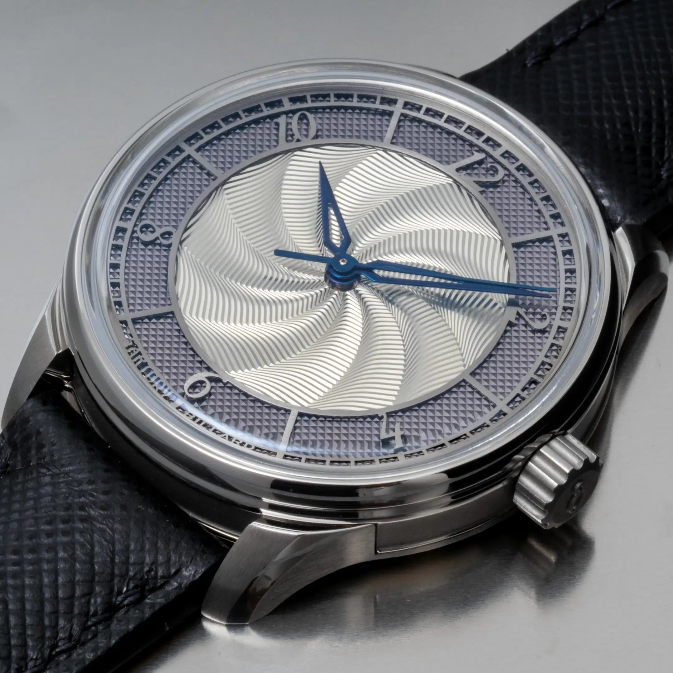 Guilloche, pronounced “gee-oh-shay,” is derived from the French term “guillocher,” meaning to decorate with intersecting curved lines. This technique transforms plain surfaces into mesmerizing displays of geometry and light, adding depth, texture, and character to watch dials.