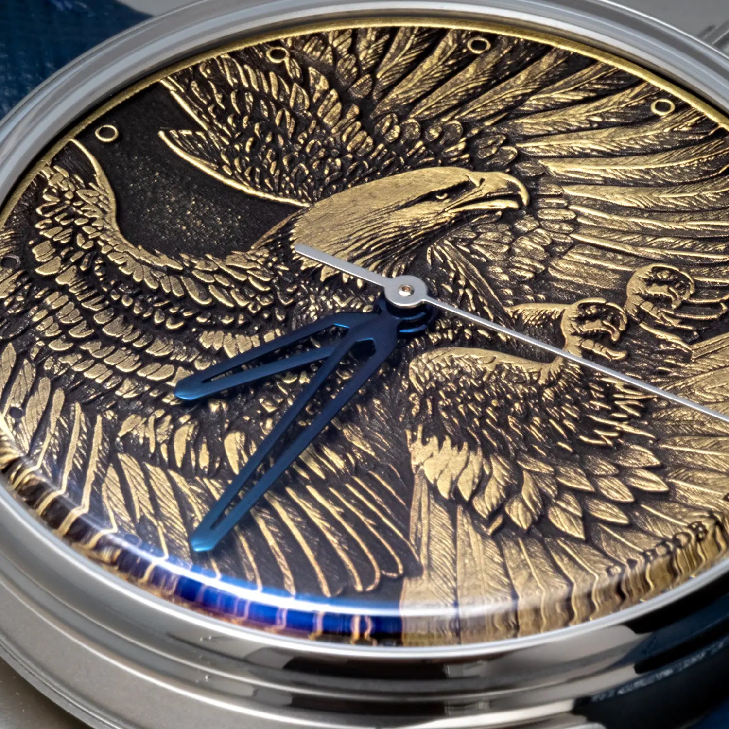 What truly distinguishes this dial, in addition to the striking animal figure, is the forced patina applied to the brass. The patina, which is deliberately induced through chemical processes, serves to enhance the visual depth and texture of the engraving, allowing the details to stand out in relief. This process gives the dial a sense of age and character, contributing to the unique identity of this piece.